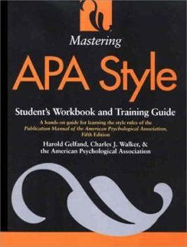 Mastering APA Style: Student's Workbook And Training Guide Fifth Edition By Harold Gelfand Charles J. Walker American Psychological Association By Thriftbooks