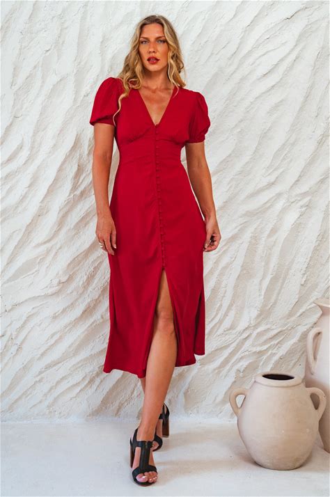 Emilia Button Down Midi Dress - Tomato / S