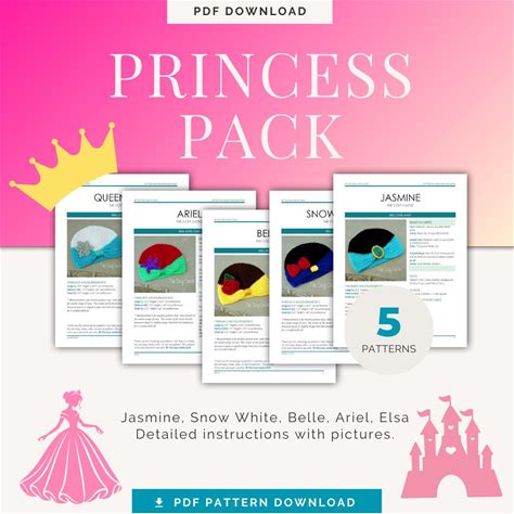 10 English PDF Crochet Princess Patterns American Terms Elsa Ariel Asha Pocahontas Tiana Cinderella Belle Snow White Tinkerbell Aurora