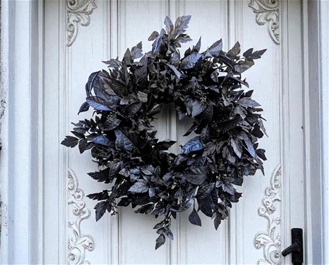Black Halloween Fern Wreath For Front Door Wispy Halloween Wreath, Halloween Wreath With Black Berries, Not Scary Halloween Wreath