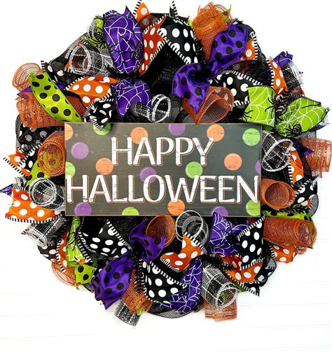 Halloween Wreath-Halloween Door Wreath-Halloween Door Decor-Halloween Decor-Halloween Wreath For Front Door-Halloween Mesh Wreath-Halloween