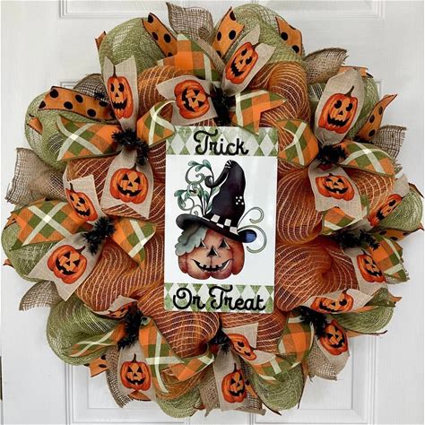 What A Mesh By Diana Trick Or Treat Country Jack O Lantern Handmade Deco Mesh Wreath