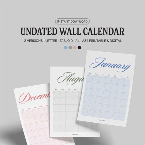 Large Undated Monthly Wall Calendar: A3 A4 Printable (Digital Download)