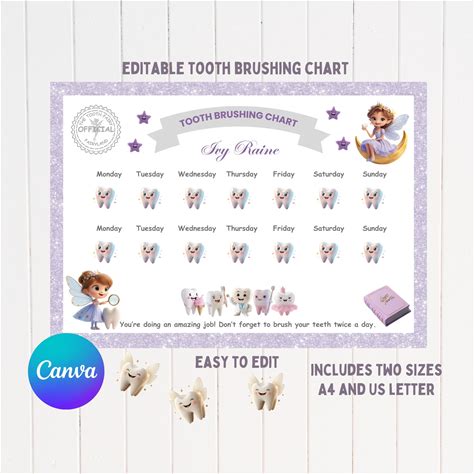 Tooth Brushing Chart Tooth Fairy Personalised Tooth Tracker Rainbow EDITABLE Printable Canva Template Instant Download Digital Template