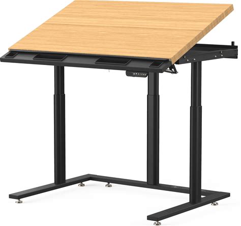 Height Adjustable Drawing Art Table Tilting Glass Top Artist Desk Storage Drawer Writing Craft Station Natural Wood Finish Perfect For Artists Crafters