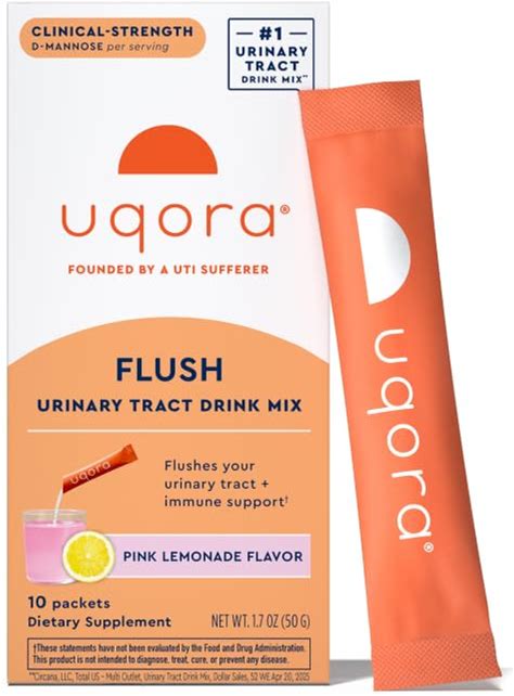 Uqora Flush - Urinary Tract With D-Mannose, Vitamin C, Vitamin B6, Potassium, Magnesium & Calcium - Gluten-Free & Vegan - Pink Lemonade Flavor - 10