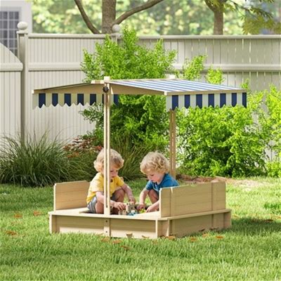 Costway Kids Wooden Sandbox With Canopy Large Sand Pit With Mesh Windows And Bottom Liner-Multicolor