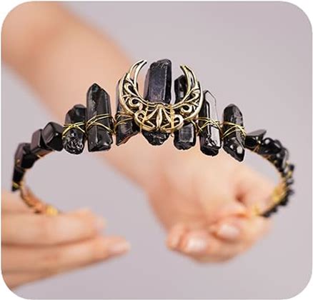 JWICOS Moon Crystal Crown Headband Raw Quartz Tiara Witch Bride Headpiece For Women Halloween Costume Parties Photography (Type 2)