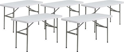 Flash Furniture 5 -Pack 2-Ft X 4-Ft Indoor Rectangle Plastic White Folding Banquet Table 4 -Person | 196861044250