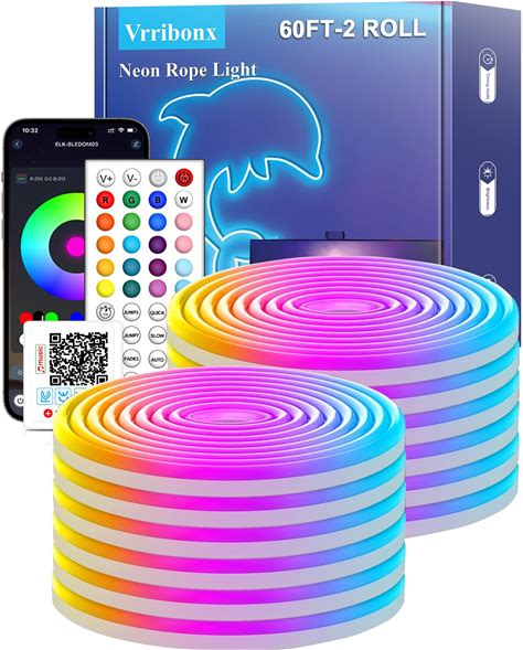 60ft LED Neon Rope Lights,Control With App/Remote,Flexible Led Rope Lights,Multiple Modes,IP65 Outdoor RGB Neon Lights Waterproof,Music Sync Gaming