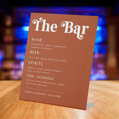 Whimsical 70S Retro Script Wedding Bar Drink Menu Pedestal Sign