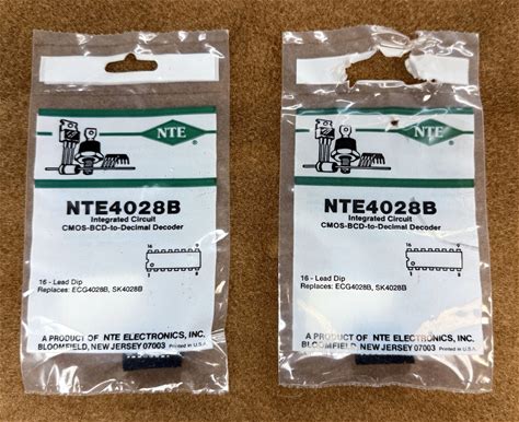 NOS NEW NTE Electronics NTE4028B IC CMOS BCD To Decimal Decoder (ECG4028B) 2 Pk