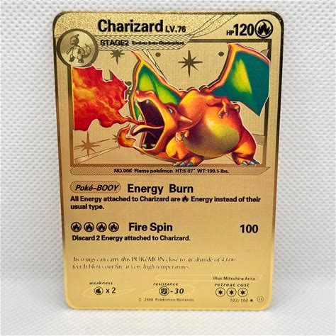 Charizard Gold Metal Pokémon Card Collectible/Gift/Display