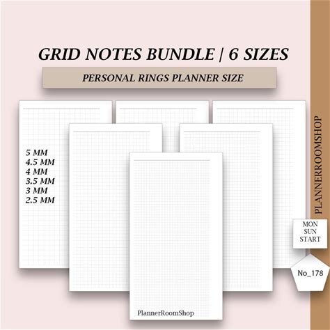 Printable Notes Inserts | Personal Planner Size | Notes Grid Layout | Notes Planner Bundle | 6 Pdf Files Printable Refill, 178