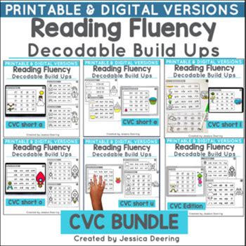 Decoding Practice | CVC Words Decodable Practice Fluency Card Bundle