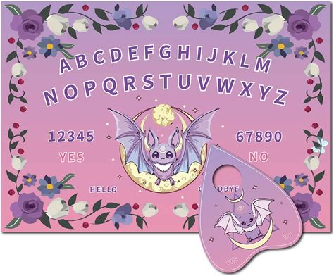 CREATCABIN Bat Pendulum Board Wooden Spirit Board Purple Dowsing Divination Kit Purple Flower Wood Talking Board Metaphysical Message With Planchette