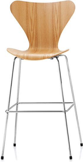Series 7 Stool - Wood Veneer By Arne Jacobsen For Fritz Hansen / Counter Stool - 25.2" / Standard Glides / Oak Veneer (70) / Chrome