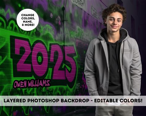 Photoshop Template Senior 2025 Graffiti Digital Backdrop Studio Background Editable Name Graduation Layered PSD Template Digital Backdrop