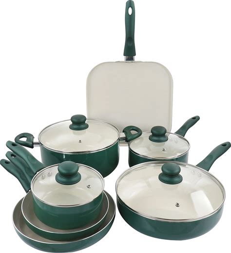 15-Piece Aluminum Ultra-Durable Non-Stick Diamond Infused Cookware And Bakeware Set In Emerald Green