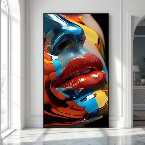 Abstract Colorful Face Canvas, Pop Art Portrait, Vibrant Home Decor