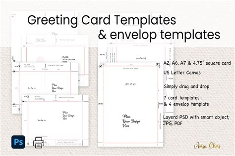 Diy, Customizable Greeting Cards And Envelopes Template Bundle | PSD, PDF & JPEG Files, Design Your Own Foldable Greeting Card