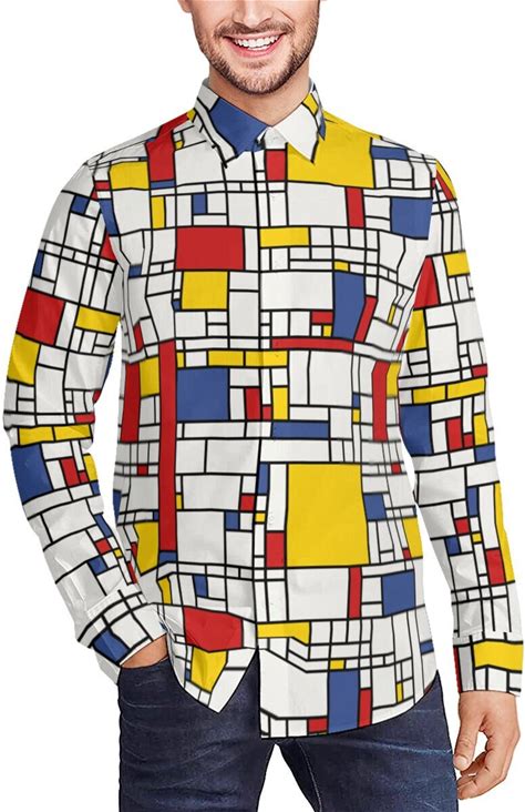 Retro Shirt, Mod 60S Shirt, Mondrian Shirt, Men's Vintage Style Shirt, Men's Dress Shirt, Mod 60S Shirt, Geometric Print Shirt Men