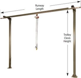 500 Lb. Capacity, Spanco, Monorail System, 12' Runway Length, 14' Trolley Clevis Height, 2 Columns, 50SM 1214