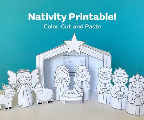 Printable Nativity Play Set | Cut & Color Christmas Craft For Kids | Bible Story Activity | DIY 0023