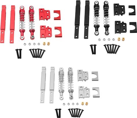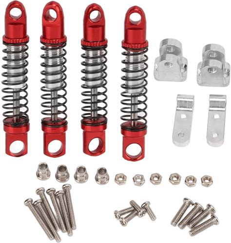 Drfeify RC Alu Shock Absorber Set, Hole To Hole 35Mm, Front + Rear, Bracket + Screw Kit, Upgrades Parts For WPL D12 1/10 RC Car, 4 Pcs/Set(Red)