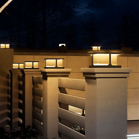 PAKEDANDUN Outdoor Modern Post Light,11.8" Hard Wired Column Caps Lamp Grey Square Post Pillar Lights Waterproof 3000K Luxury LED Lighting With E26