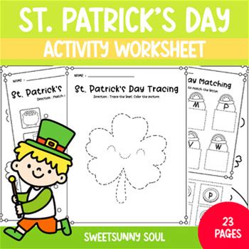 St. Patricks Day Pre-K Activity Worksheets Set | Line Tracing, Matching, Counti