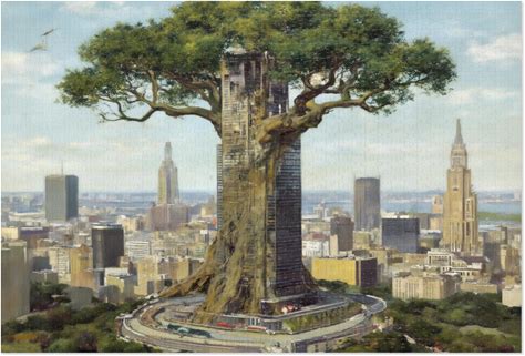 Giant Tree Tower Cityscape Jigsaw Puzzle With Tin