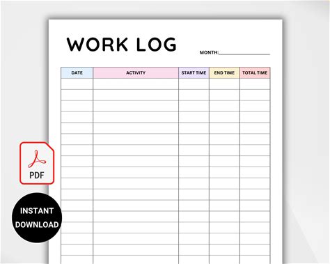 Work Log Template | Editable & Printable | Work Schedule