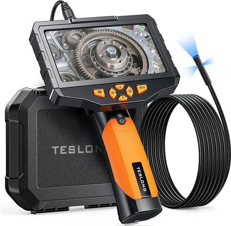 Articulating Borescope With Dual Lens Endoscope, Teslong 5-Inch IPS Automotive Inspection Camera With Two-Way Articulation Tip, 6+1 LED Lights, Mechanics Fiber Optic Scope-Dia. 0.25 Inch & L