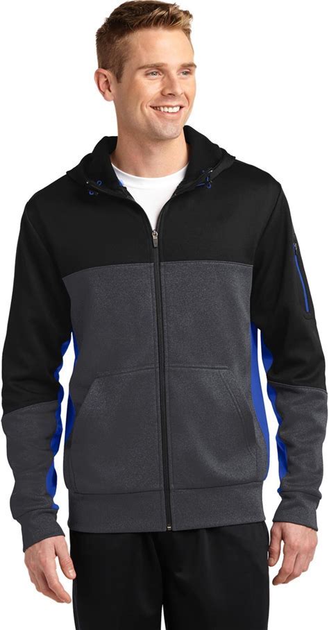 Sport-Tek Men's Tech Fleece Colorblock Full-Zip Hooded Jacket - Black/Graphite Heather/True Royal - Large - ST245