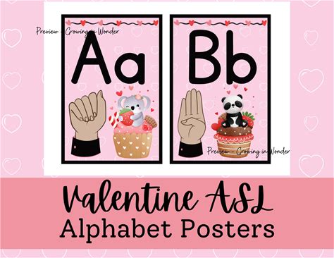 Valentine Alphabet Sign Language Cards, Printable ASL Classroom Posters