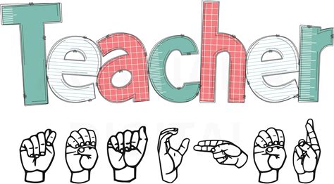 Teacher Sign Language ASL PNG SVG Pdf Jpg Digital Download Sublimation Cut Files Pod Teacher Sign Language Rainbow Colors Teacher Design 3