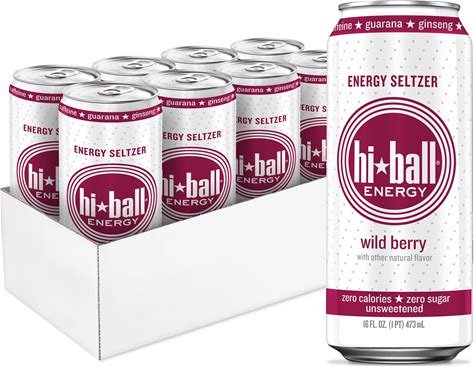 Hiball Clean Energy Drink - Wild Berry - Zero Sugar, Zero Calorie Sparkling Water With 160Mg Organic Caffeine, 50Mg Organic Ginseng, 50Mg Organic