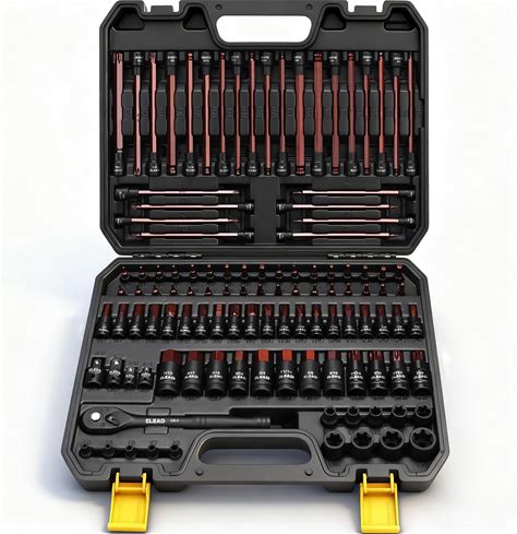 112-Piece Torx And Allen Bit Socket Set, 1/4", 3/8",1/2" Drive Bit Socket Set With Ratchet Wrench, Adapters, Extra Long Tamper Proof Torx/Hex/Ball End Hex/E-Torx, SAE Metric