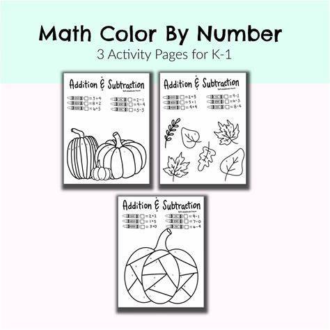 Addition and Subtraction Color by Number Sheets