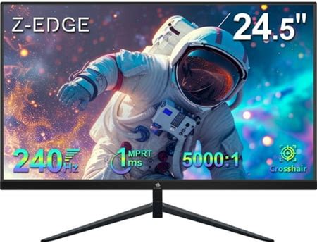 Z-Edge 24.5 Inch 240Hz Gaming Monitor, FHD 1080P VA Display, 1Ms Mprt, AMD Freesync, HDR Support, Vesa Mount Compatible