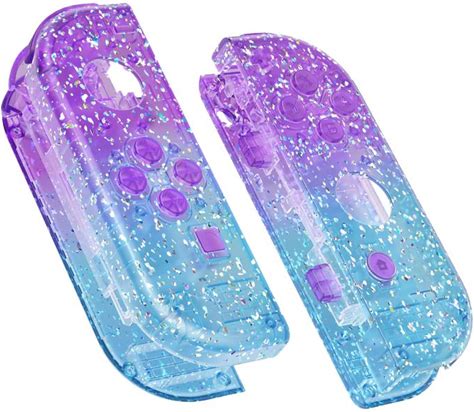 E Xtreme Rate Diy Replacement Shell Buttons For Nintendo Switch & Switch Oled Joycon And Strap, Glitter Gradient Translu