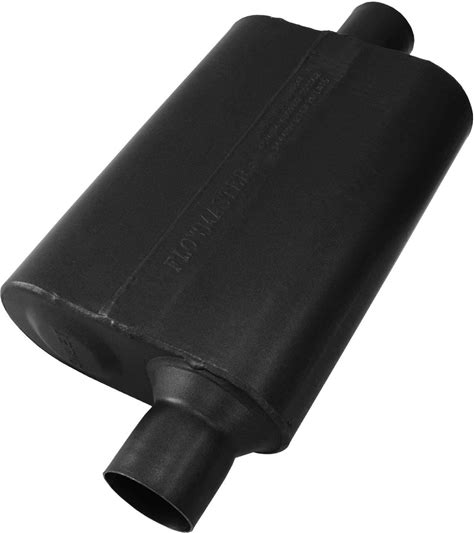 Flowmaster Inc. 40 Series Muffler, 2.5in Offset Inlet 2.5in Center Outlet, Non-Reversible, Aggressive Sound, 42541