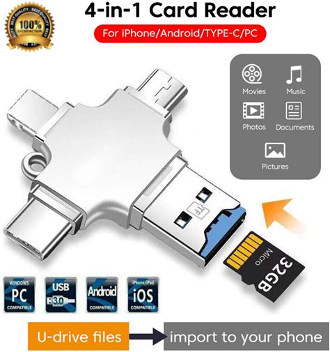 4 in 1 OTG Usb-C Flash Drive Memory Stick Pen For Lightning For iPhone / Type C / Micro-USB USB3.0