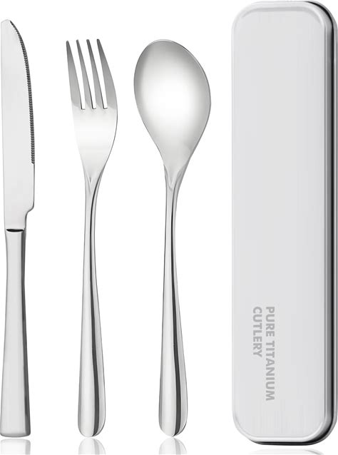 Zing TTI Titanium Tableware Set, Travel Tableware With Box, Including Titanium Fork, Knife And Spoon, In A Suitcase, Portable Design, Suitable For