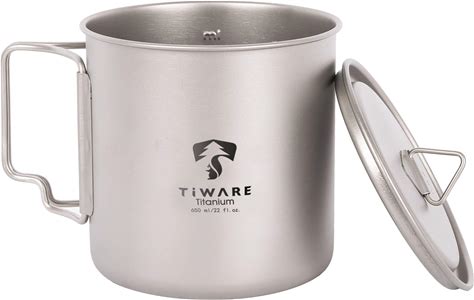 Titanium Dual Purpose Camping Mug Or Pot With Lid 650ML/21.9 FL. OZ Ultra-Light Weight Tableware Durable W. Foldable Handles For Space Saver &