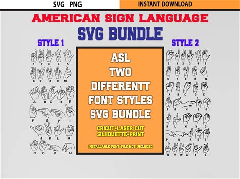 ASL Alphabet And Numbers SVG PNG Bundle | Sign Language Font
