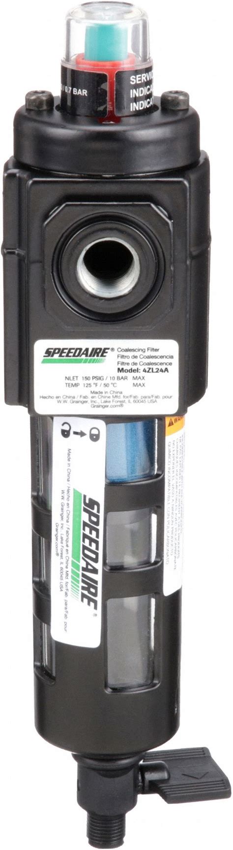 Speedaire Pneumatic Oil Filter: Coalescing, 1/4 in NPT, 0.01 Micron, 10.5 Cfm, Plastic Bowl, Compact Model: 4ZL24