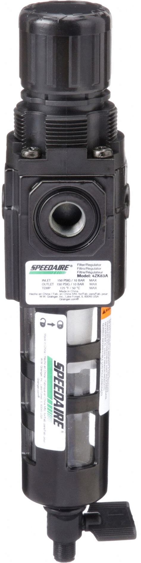 Speedaire Filter-Regulator: Compact Series, 3/8 in NPT, 80 Cfm, 40 Micron, 5 Psi To 150 Psi, Zinc Model: 4ZK84