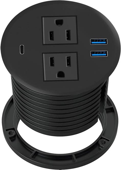 Kungfuking Desktop Power Grommet With PD 20W USB C,Recessed Power Outlets With 2 AC Plugs And 3 USB Charging Ports,Hidden Power Strip For Office